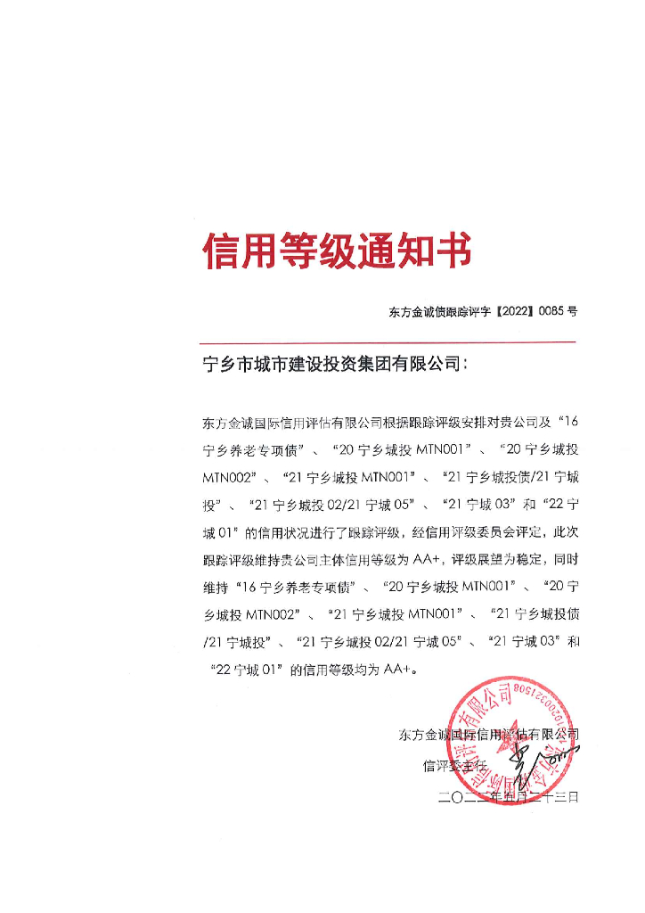 东方金诚:宁乡市城市建设投资集团有限公司主体及相关债项2022年度跟踪评级报告.pdf