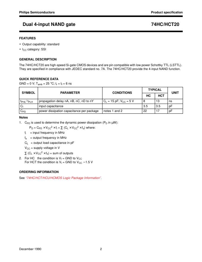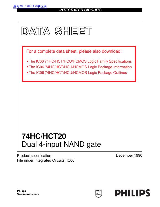 PHILIPS 74HC/HCT20 Dual 4-input NAND gate 数据手册.pdf