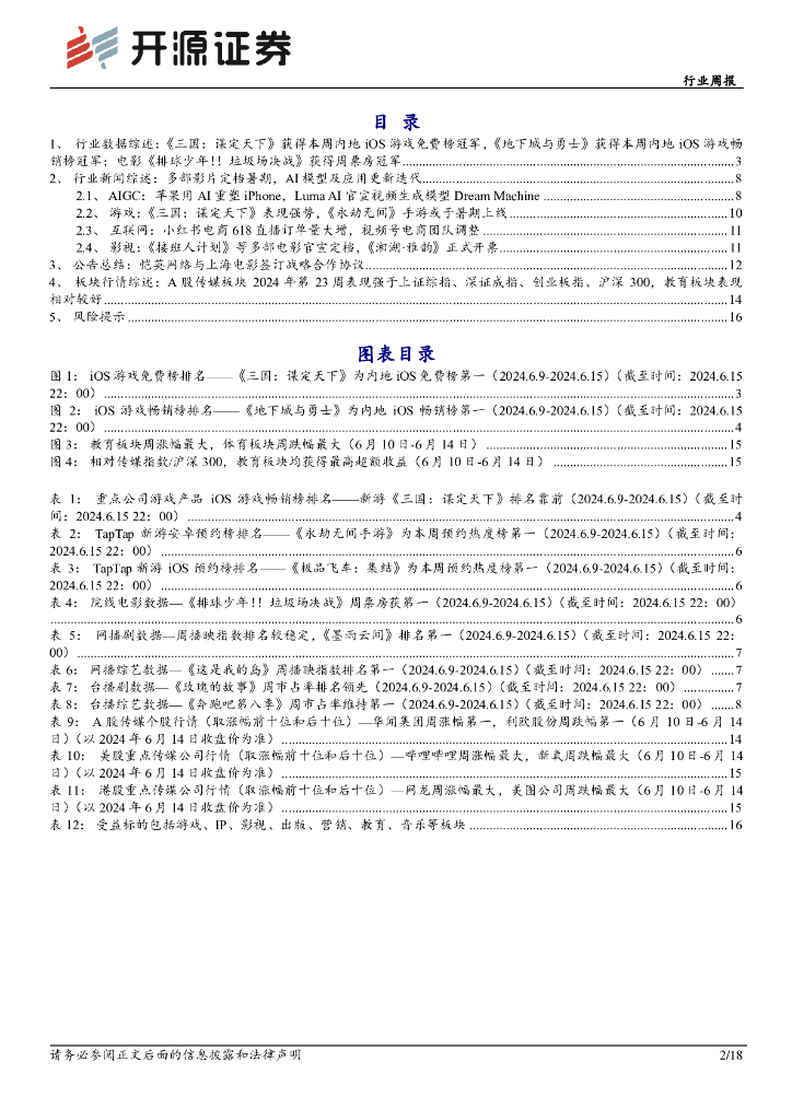 开源证券:传媒行业周报:AI端侧突破或拉动应用需求,重视新游和电影暑期档.pdf