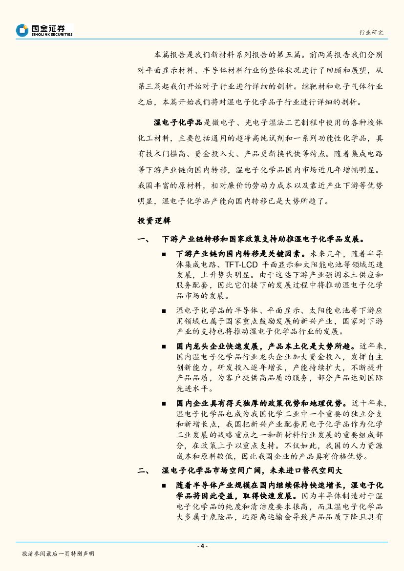 国金证券:电子化学品行业系列报告之五:湿电子化学品:技术进步迅速,龙头企业积极布局增量市场.pdf
