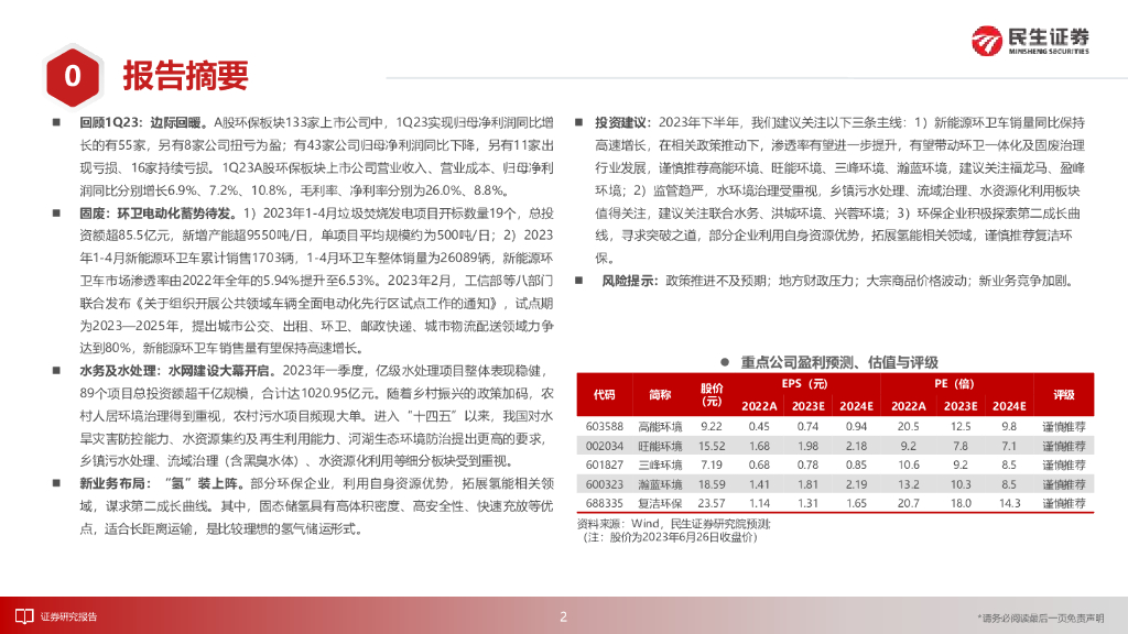 民生证券:环保行业2023年中期投资策略:环卫电动化蓄势待发,水网建设大幕开启.pdf