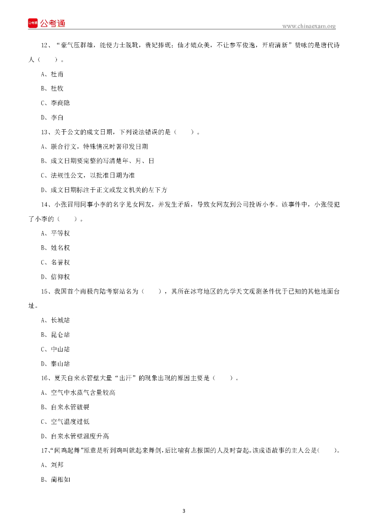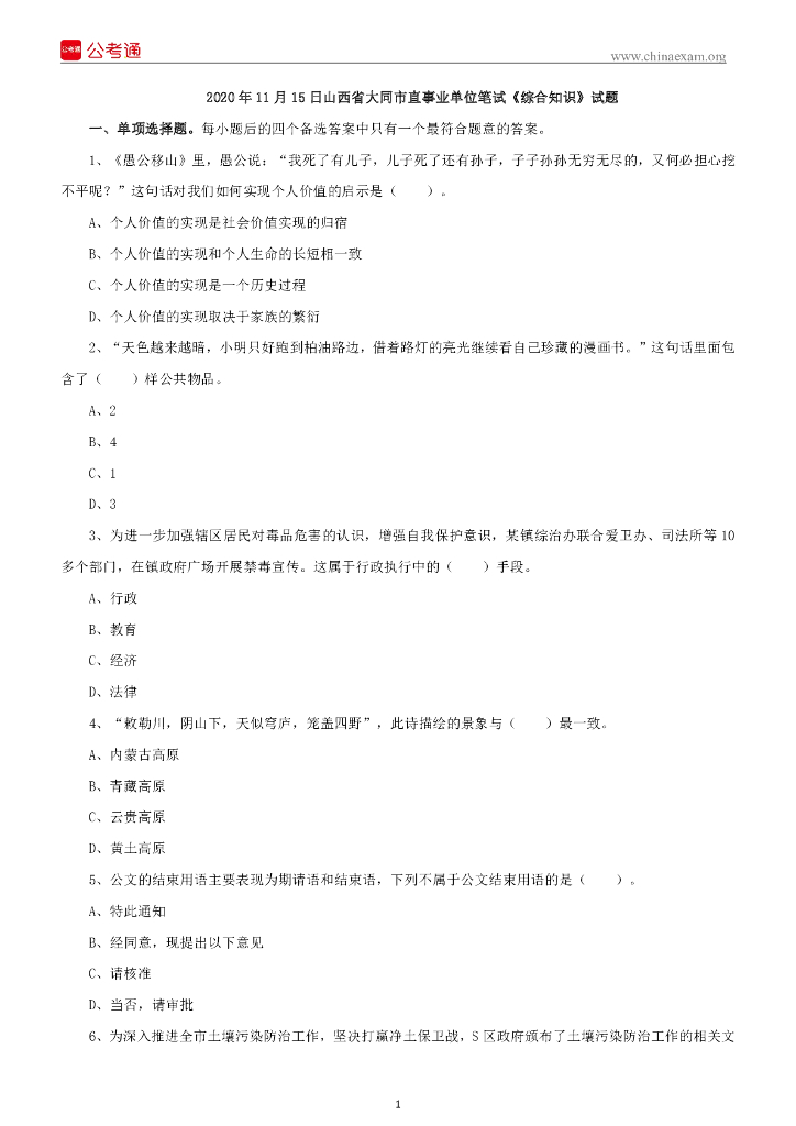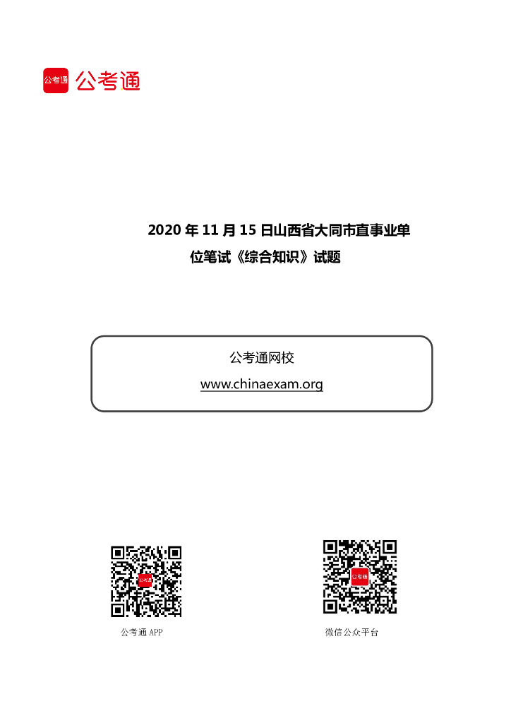 2020年11月15日山西省大同市直事业单位笔试《综合知识》试题.pdf