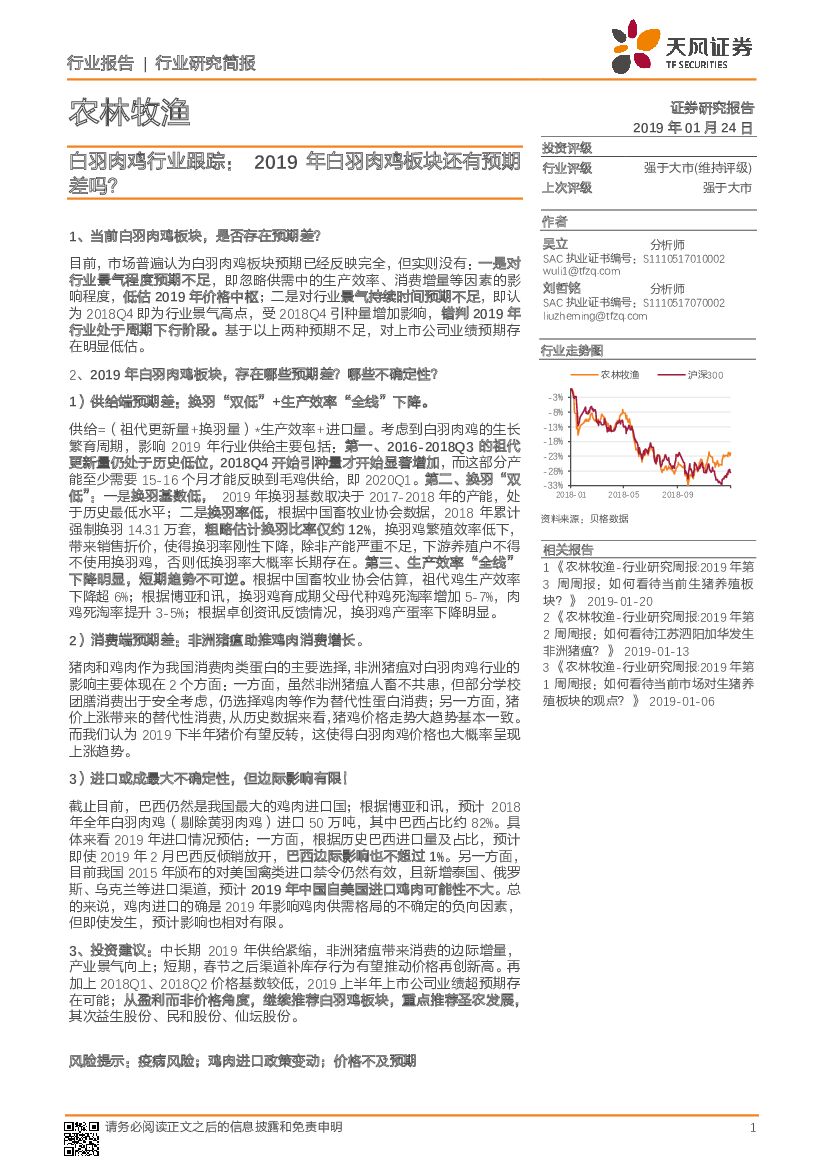 天风证券:白羽肉鸡行业跟踪:2019年白羽肉鸡板块还有预期差吗?.pdf