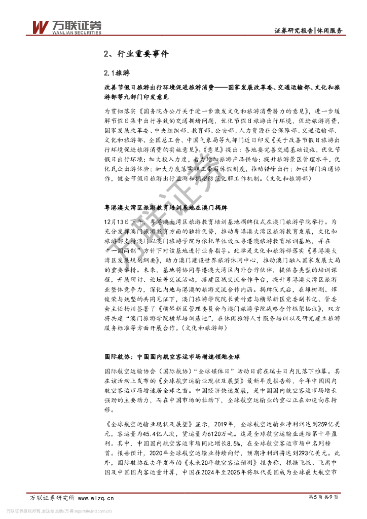 万联证券:休闲服务&教育行业周观点报告:政策力促假日旅游消费,各地校外线上培训规范陆续落地.pdf