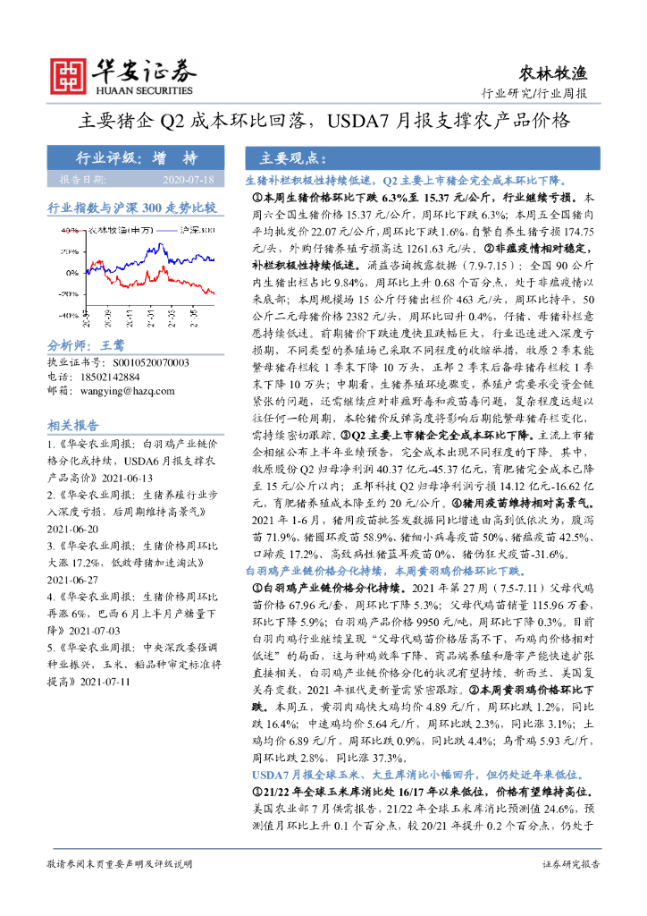 华安证券:农林牧渔行业周报:主要猪企Q2成本环比回落,USDA7月报支撑农产品价格.pdf