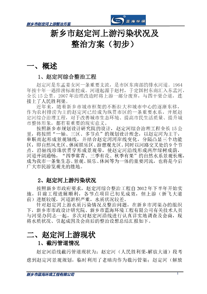 新乡市赵定河上游污染状况整治方案.doc