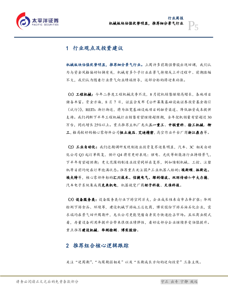太平洋证券:机械行业周报:机械板块估值优势明显,推荐细分景气行业.pdf