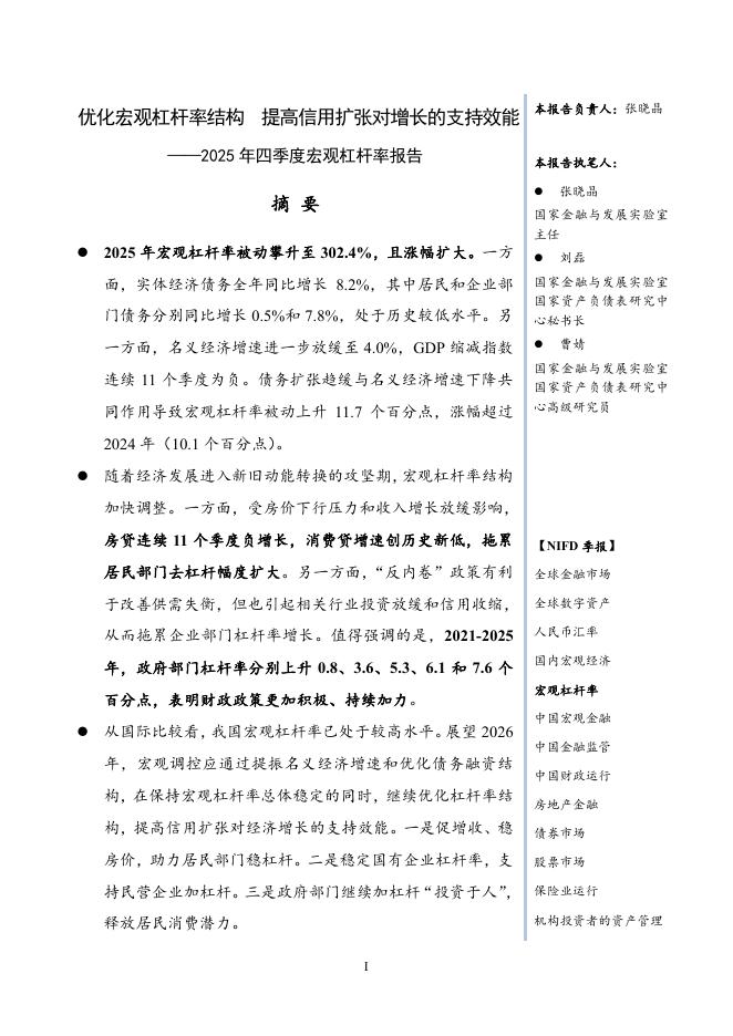 NIFD季报:优化宏观杠杆率结构 提高信用扩张对增长的支持效能-2025年四季度宏观杠杆率.pdf