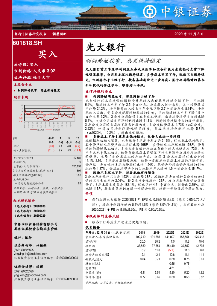 中银证券:光大银行(601818)-利润降幅收窄,息差保持稳定.pdf