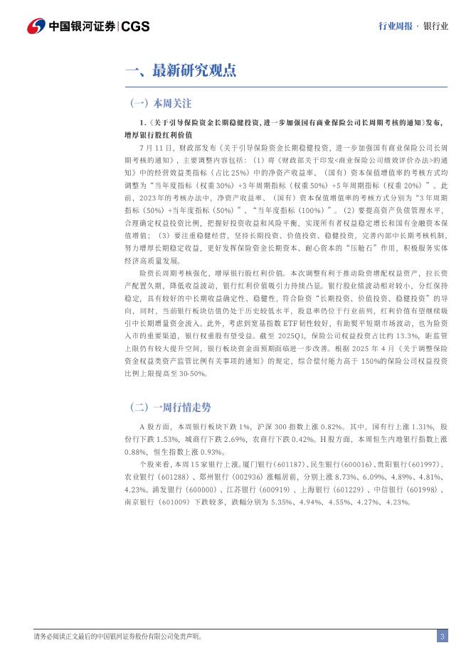 中国银河:银行业周报:险资长周期考核强化,增厚银行股红利价值.pdf