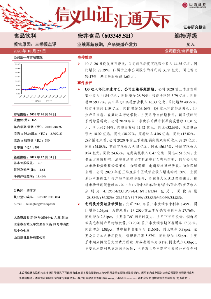 山西证券:安井食品(603345)-业绩再超预期,产品渠道齐发力.pdf