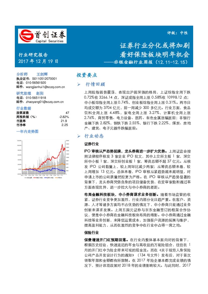 首创证券:非银金融行业周报:证券行业分化或将加剧 看好保险板块明年机会.pdf