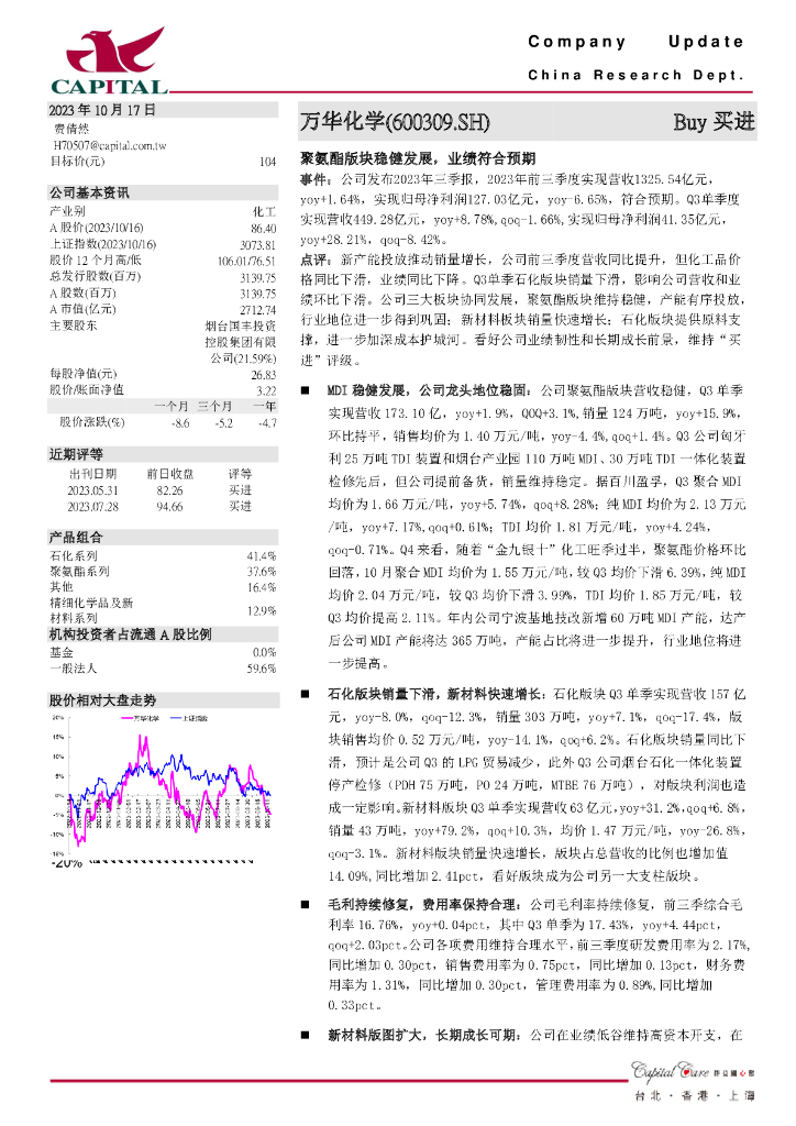 群益证券:万华化学(600309)-聚氨酯版块稳健发展,业绩符合预期.pdf