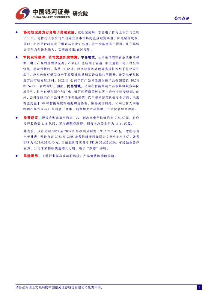中国银河:四川九洲(000801)-公司点评报告:拟收购志良电子100%股权,军品业务布局更加完善.pdf