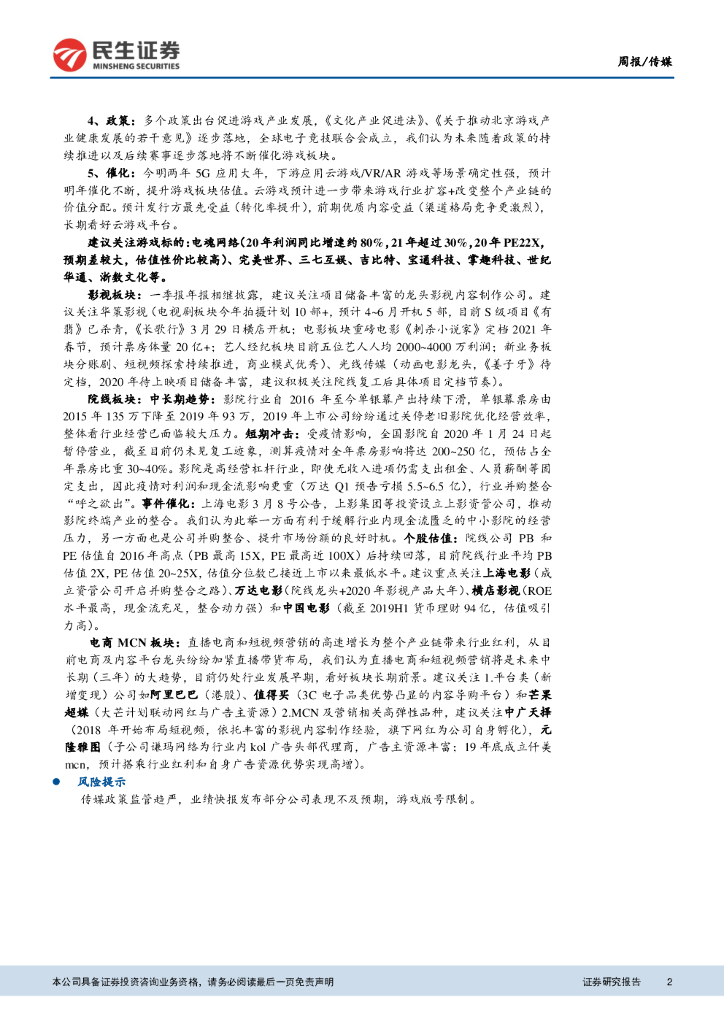 民生证券:传媒周报:持续看好线上娱乐板块.pdf