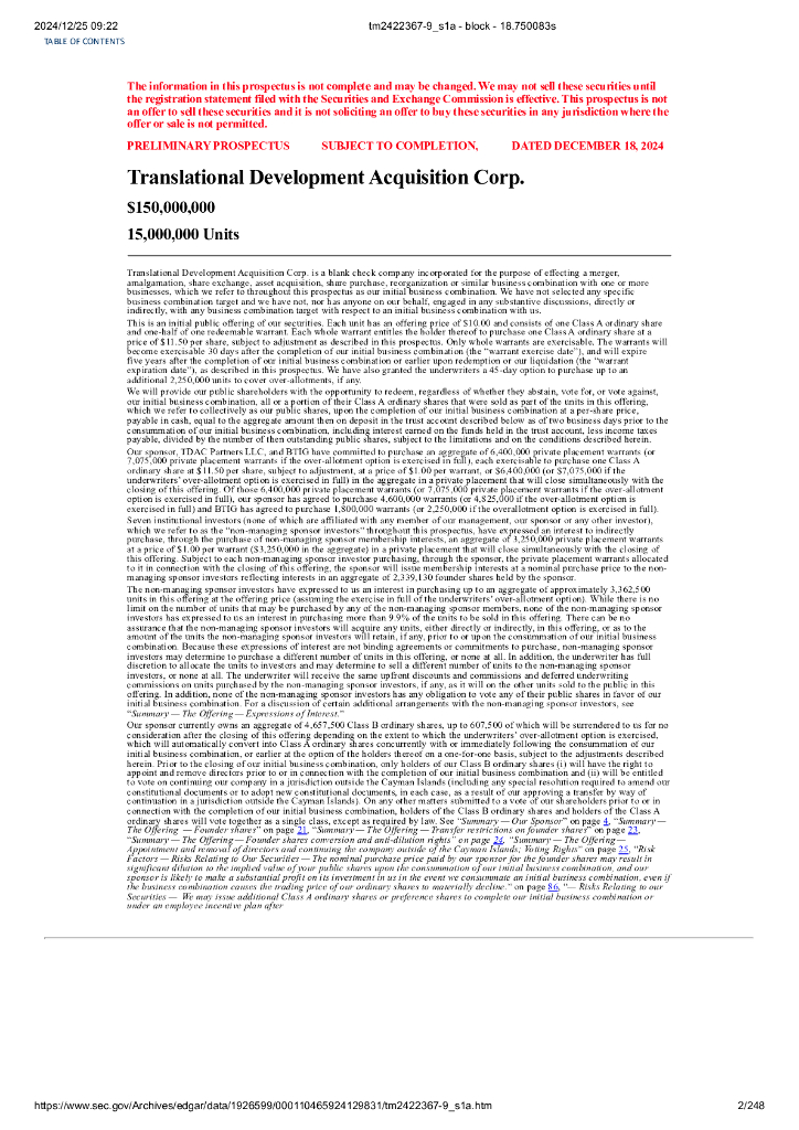 Translational Development Acquisition Corp.美股纳斯达克IPO上市招股说明书.pdf