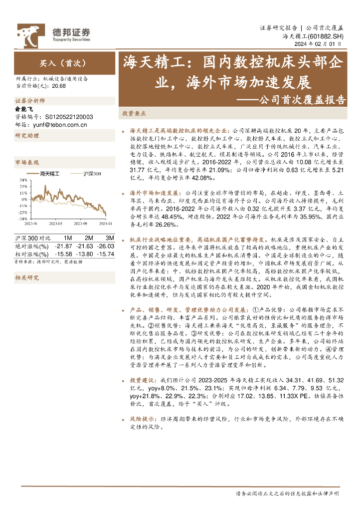 德邦证券:海天精工(601882)-公司首次覆盖报告:国内数控机床头部企业,海外市场加速发展.pdf