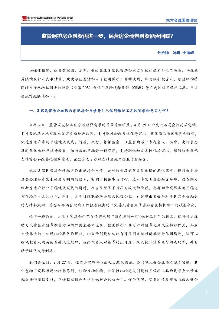 东方金诚:监管呵护房企融资再进一步,民营房企债券融资能否回暖?.pdf