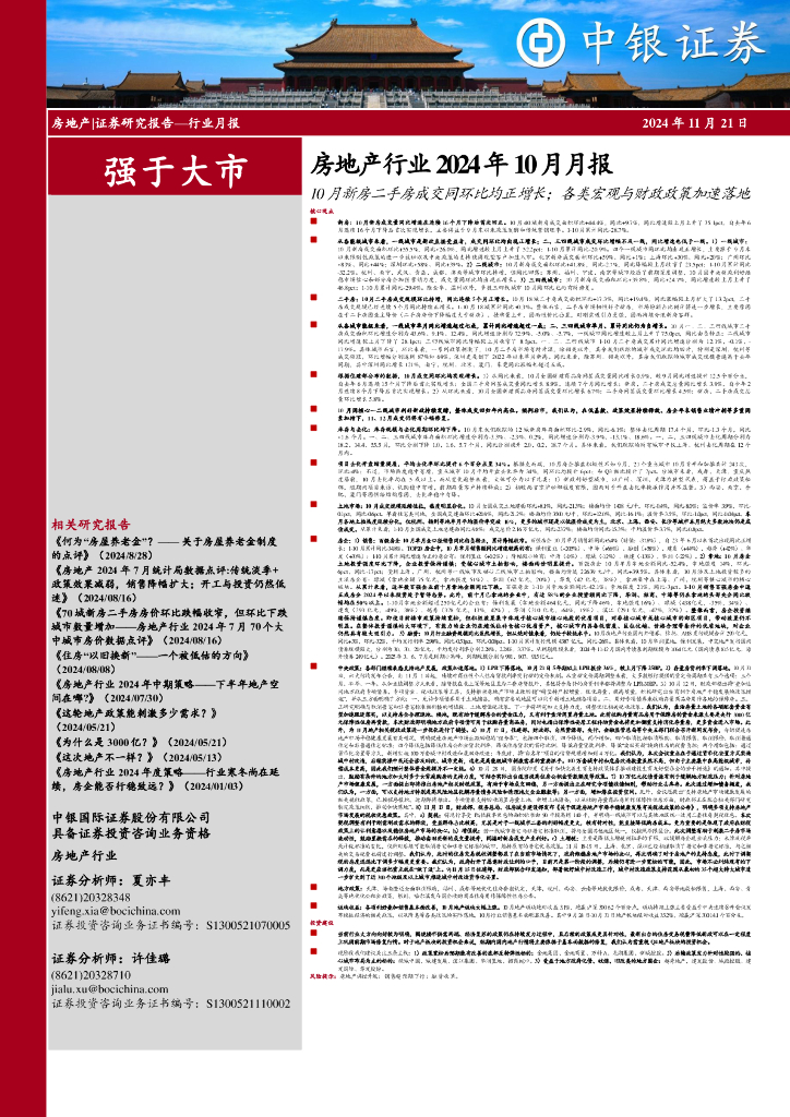 中银证券:房地产行业2024年10月月报:10月新房二手房成交同环比均正增长;各类宏观与财政政策加速落地.pdf
