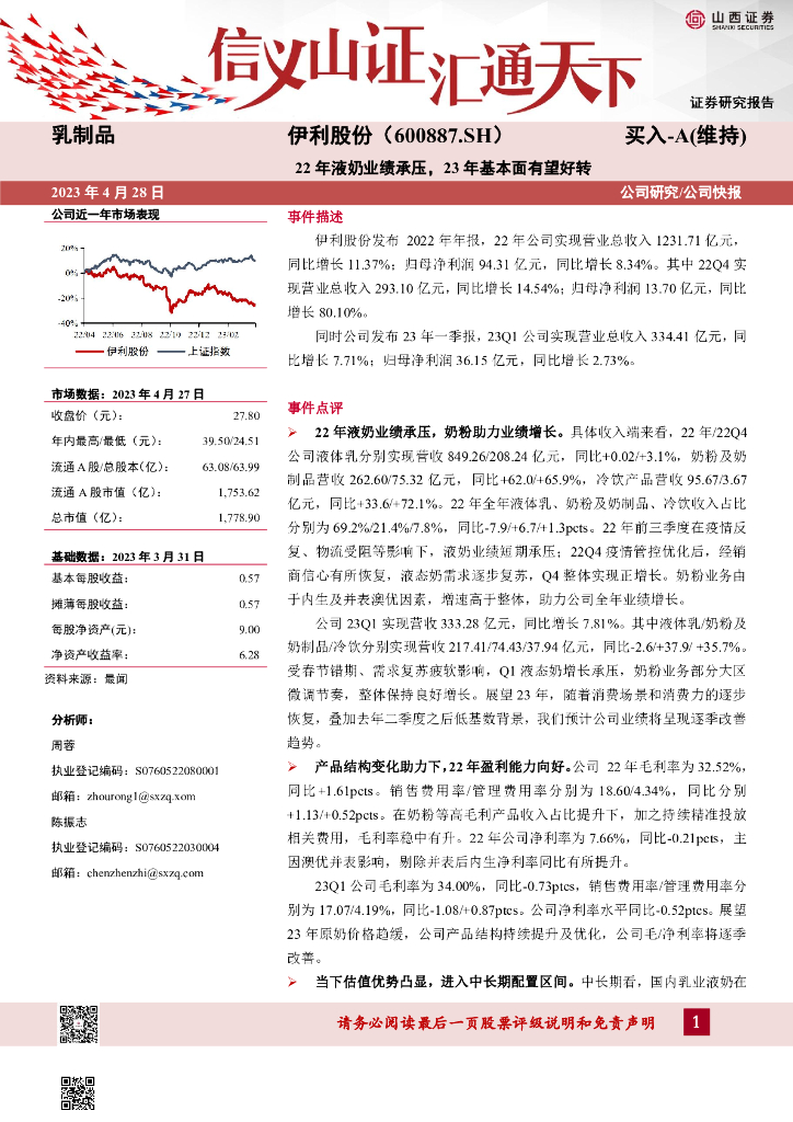 山西证券:伊利股份(600887)-22年液奶业绩承压,23年基本面有望好转.pdf