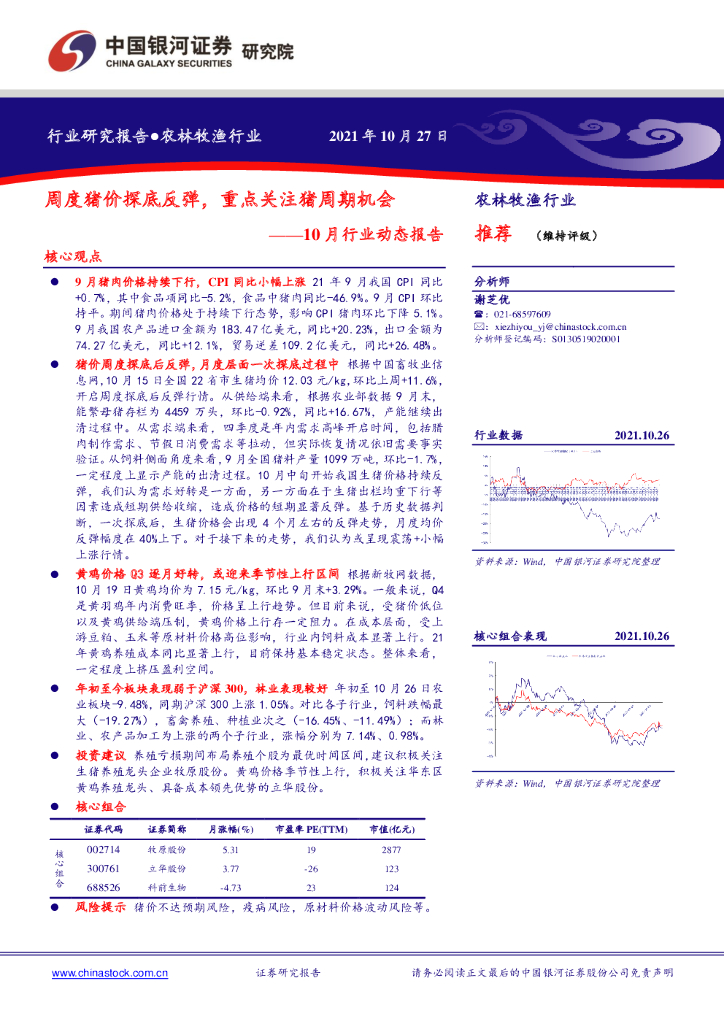 中国银河:农林牧渔行业10月行业动态报告:周度猪价探底反弹,重点关注猪周期机会.pdf