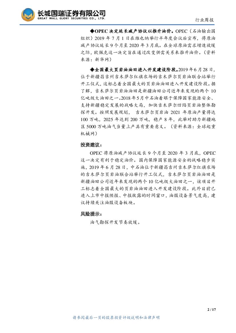 长城国瑞证券:机械设备行业双周报2019年第14期(总第135期):OPEC延长减产协议,全国最大页岩油油田开工.pdf