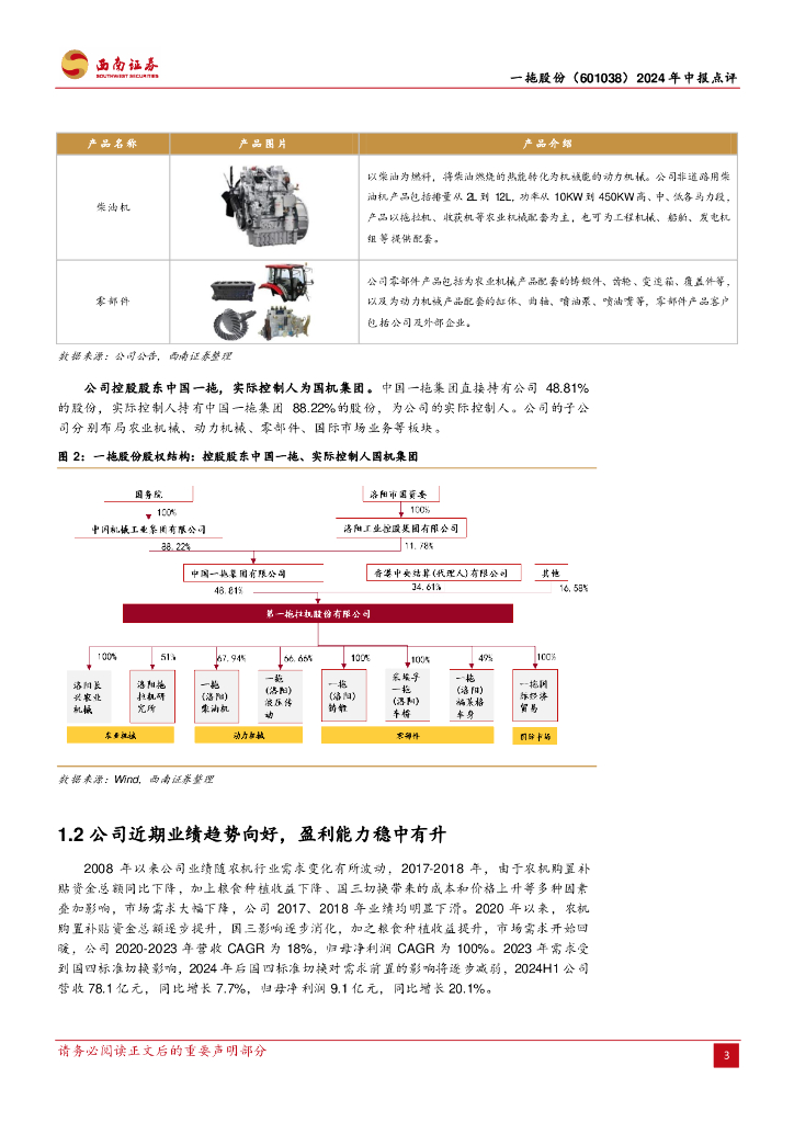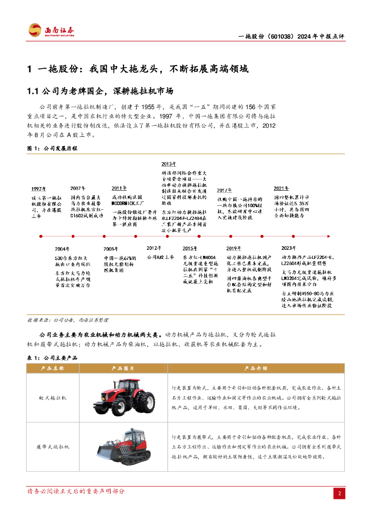 西南证券:一拖股份(601038)-2024年中报点评:中大拖销量稳健增长,净利润增速超预期.pdf