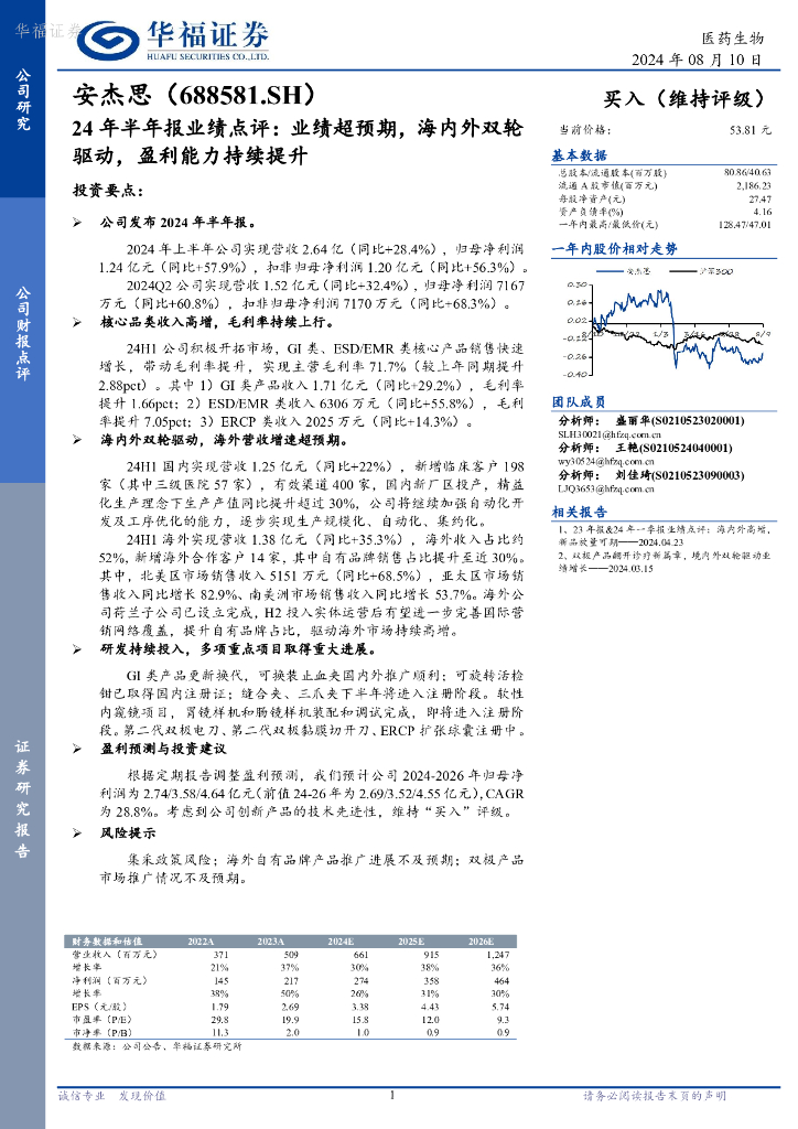 华福证券:安杰思(688581)-24年半年报业绩点评:业绩超预期,海内外双轮驱动,盈利能力持续提升.pdf
