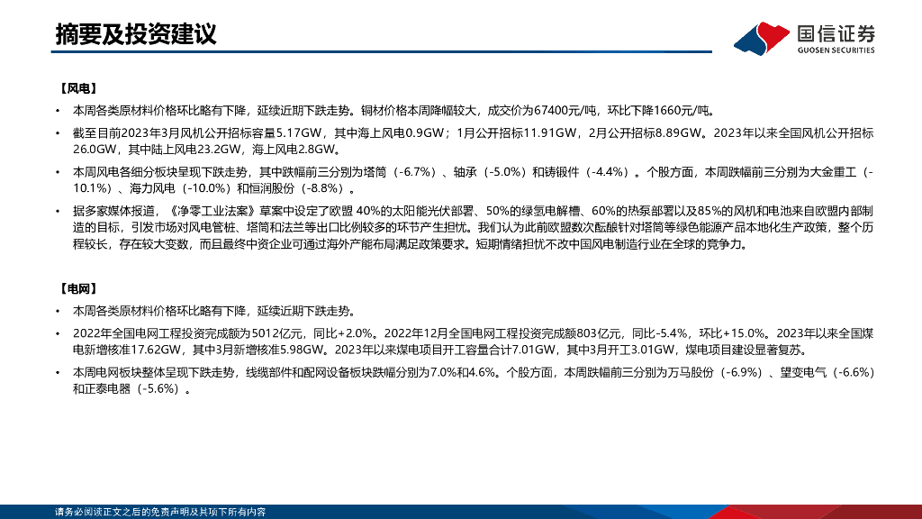国信证券:风电/电网产业链周评(3月第3周):原材料价格振荡下行,陇东-山东特高压直流项目开工.pdf