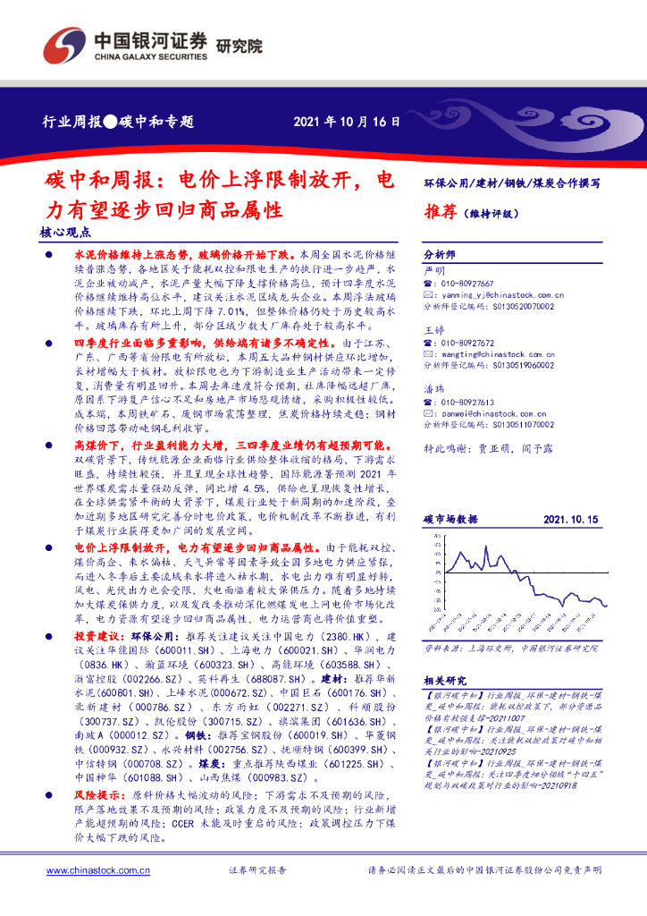 中国银河:碳中和周报:电价上浮限制放开,电力有望逐步回归商品属性.pdf