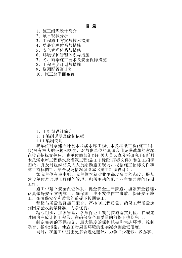木瓜溪水库施工组织设计方案Word版(共171页).doc