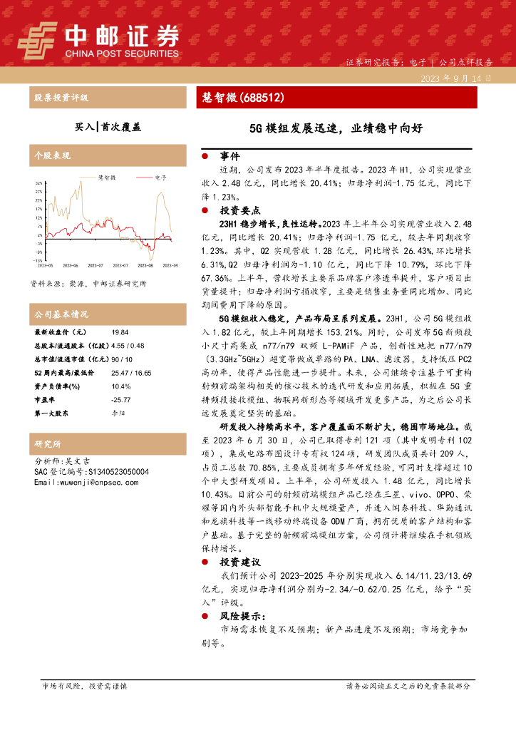 中邮证券:慧智微(688512)-5G模组发展迅速,业绩稳中向好.pdf