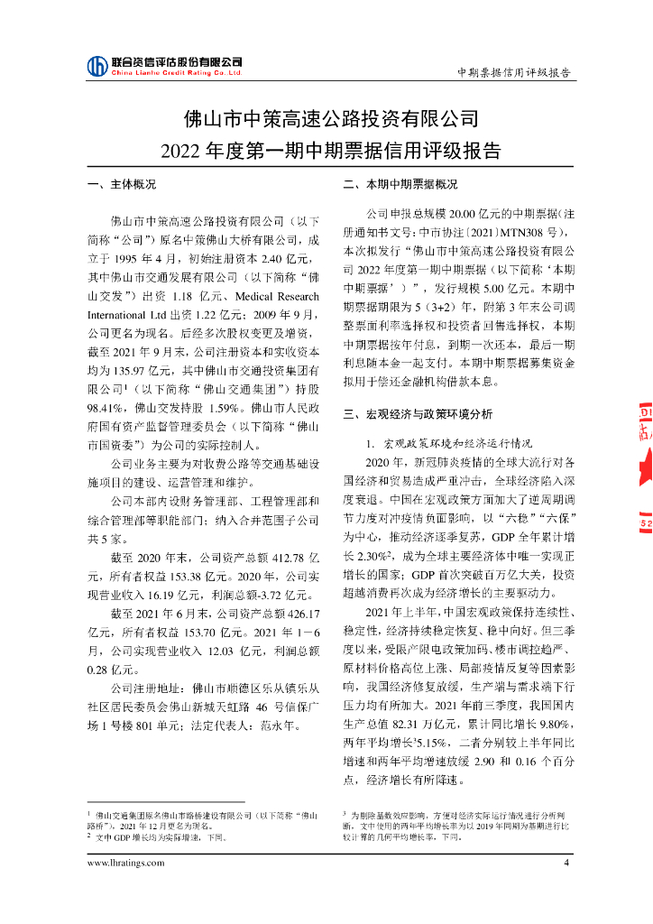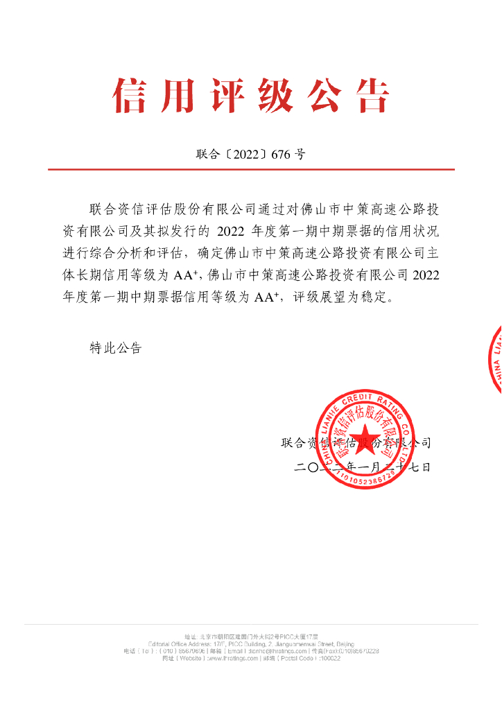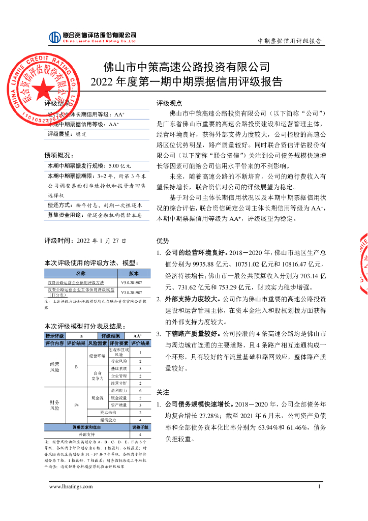 联合资信:佛山市中策高速公路投资有限公司2022年度第一期中期票据信用评级报告.pdf