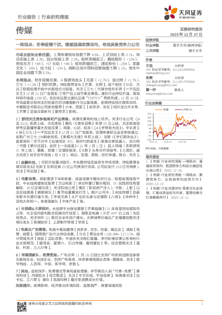 天风证券:传媒一周观点:冬季疫情干扰,继续强调政策导向,寻找具备竞争力公司.pdf