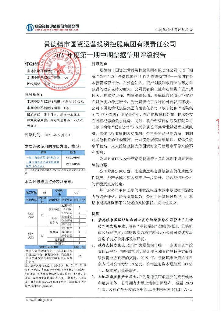 联合资信:景德镇市国资运营投资控股集团有限责任公司2021年度第一期中期票据信用评级报告.pdf