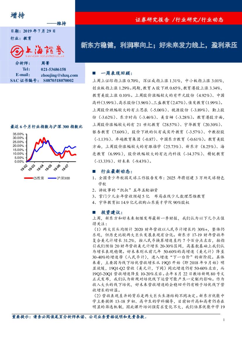 上海证券:教育行业动态:新东方稳健,利润率向上;好未来发力线上,盈利承压.pdf