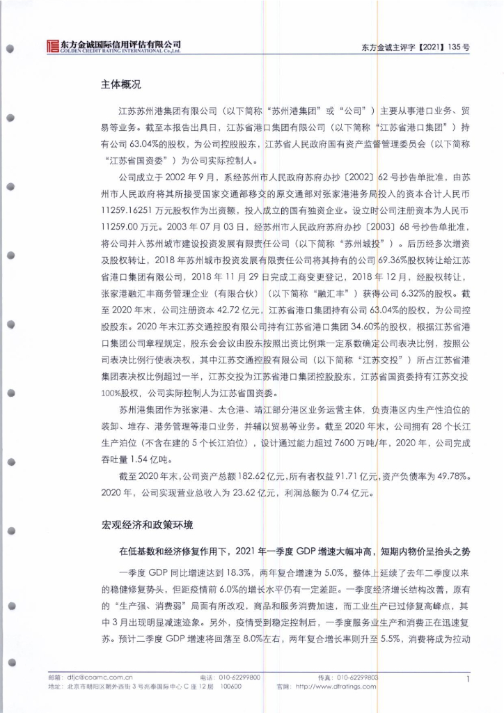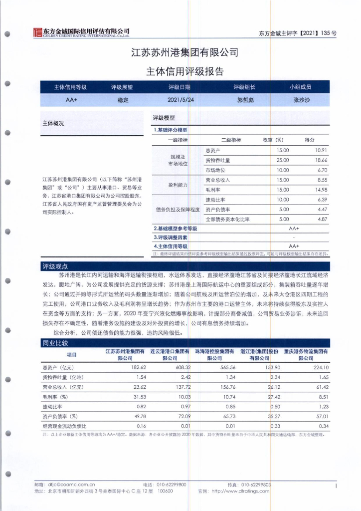 东方金诚:江苏苏州港集团有限公司主体信用评级报告及跟踪评级安排.pdf