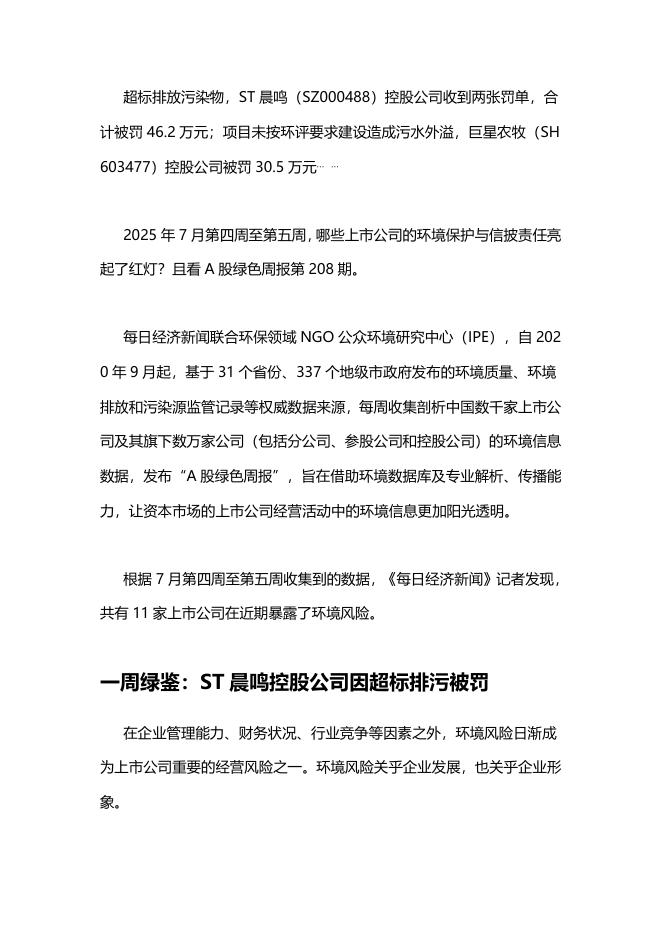 A股绿色周报(2025年第208期):11家上市公司暴露环境风险 ST晨鸣控股公司连收两张罚单.pdf