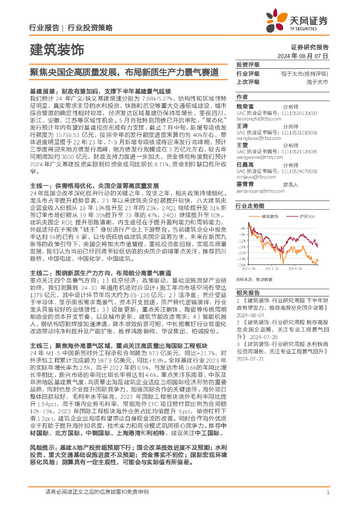 天风证券:建筑装饰行业投资策略:聚焦央国企高质量发展,布局新质生产力景气赛道.pdf