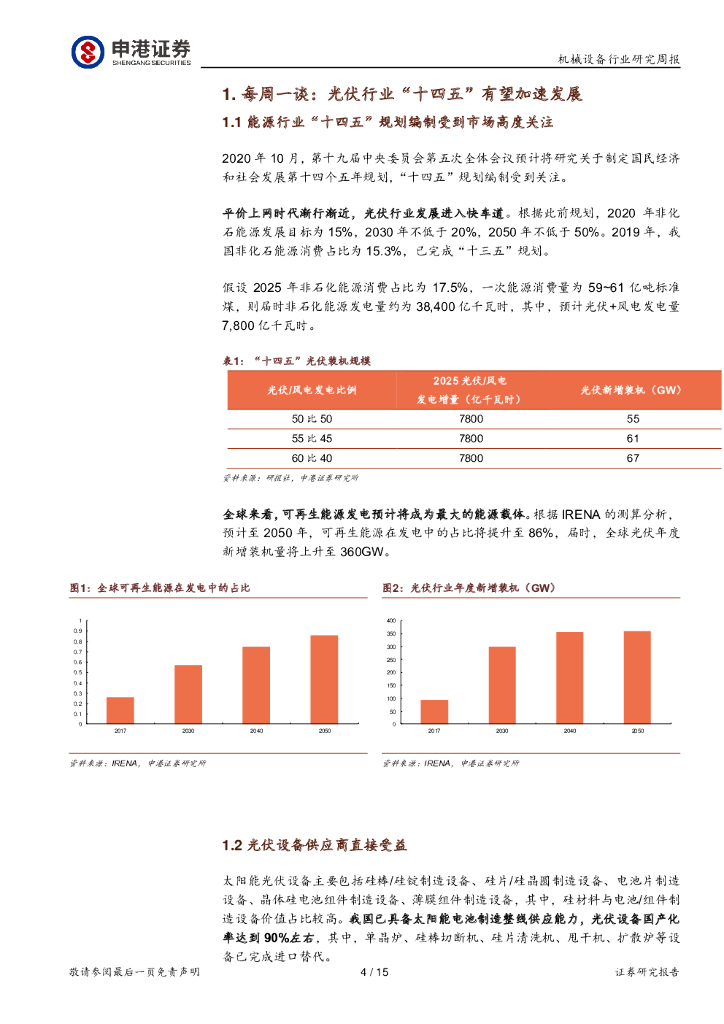 申港证券:机械设备行业研究周报:光伏行业“十四五”有望加速发展.pdf