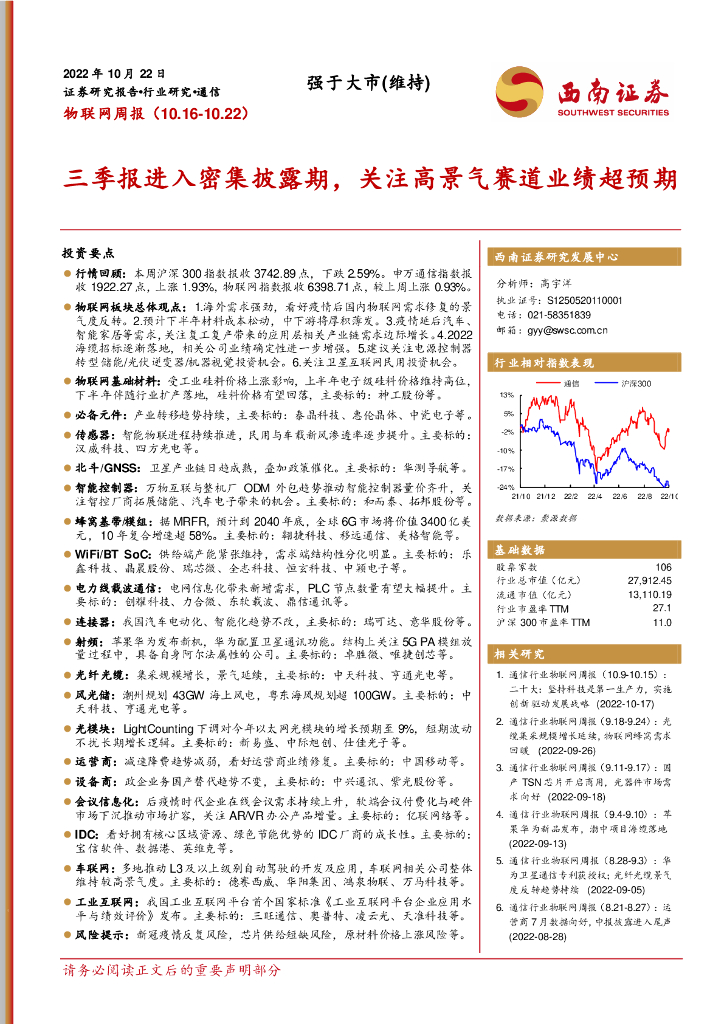西南证券:物联网周报:三季报进入密集披露期,关注高景气赛道业绩超预期.pdf