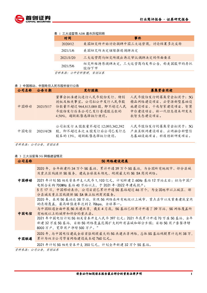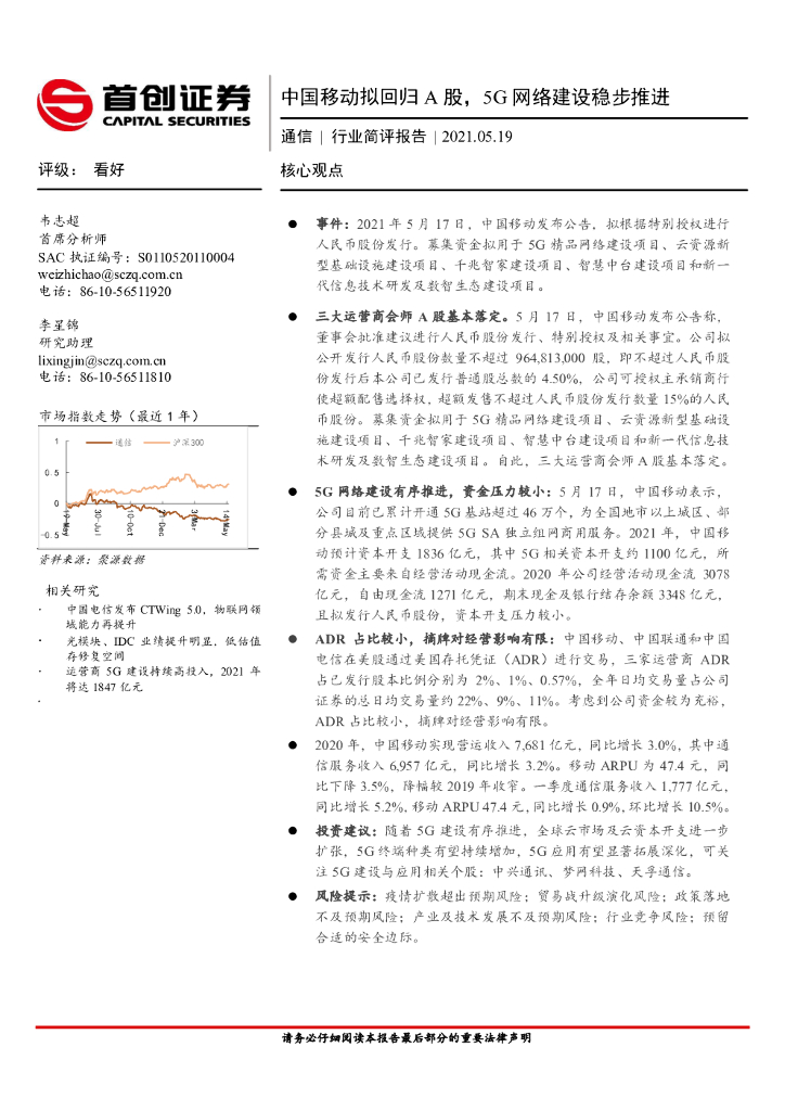 首创证券:通信行业:中国移动拟回归A股,5G网络建设稳步推进.pdf