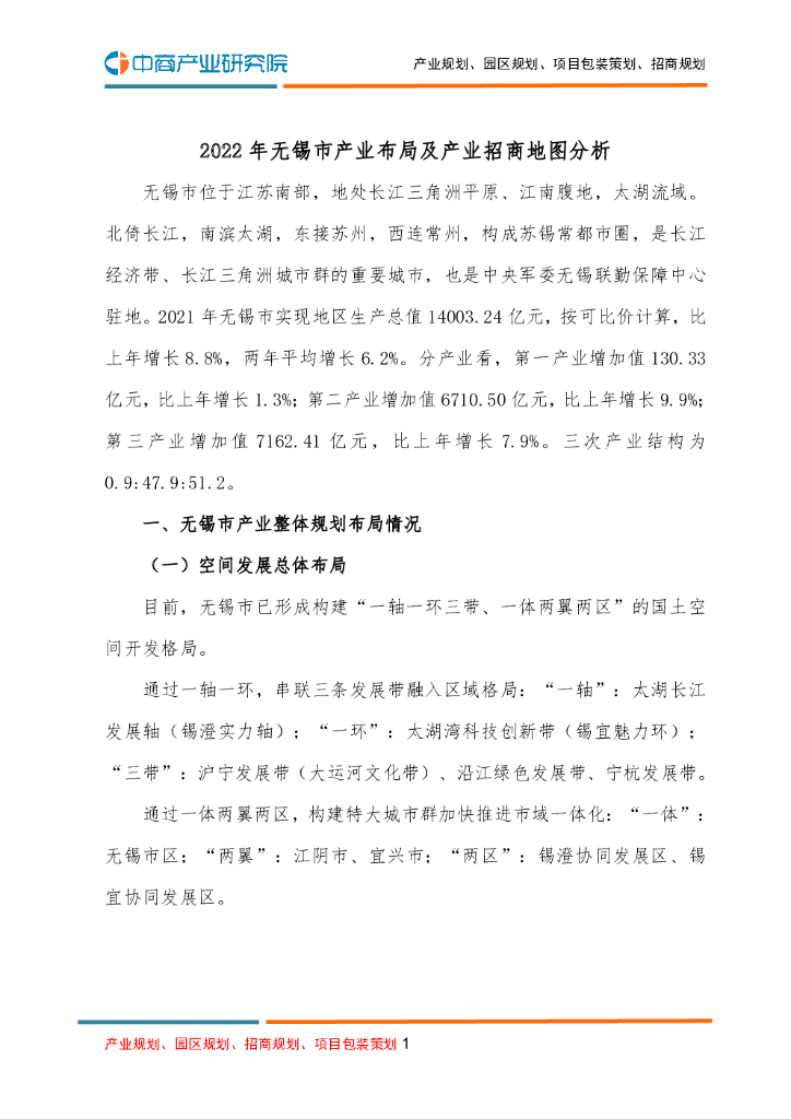 2022年无锡市产业布局及产业招商地图分析.pdf