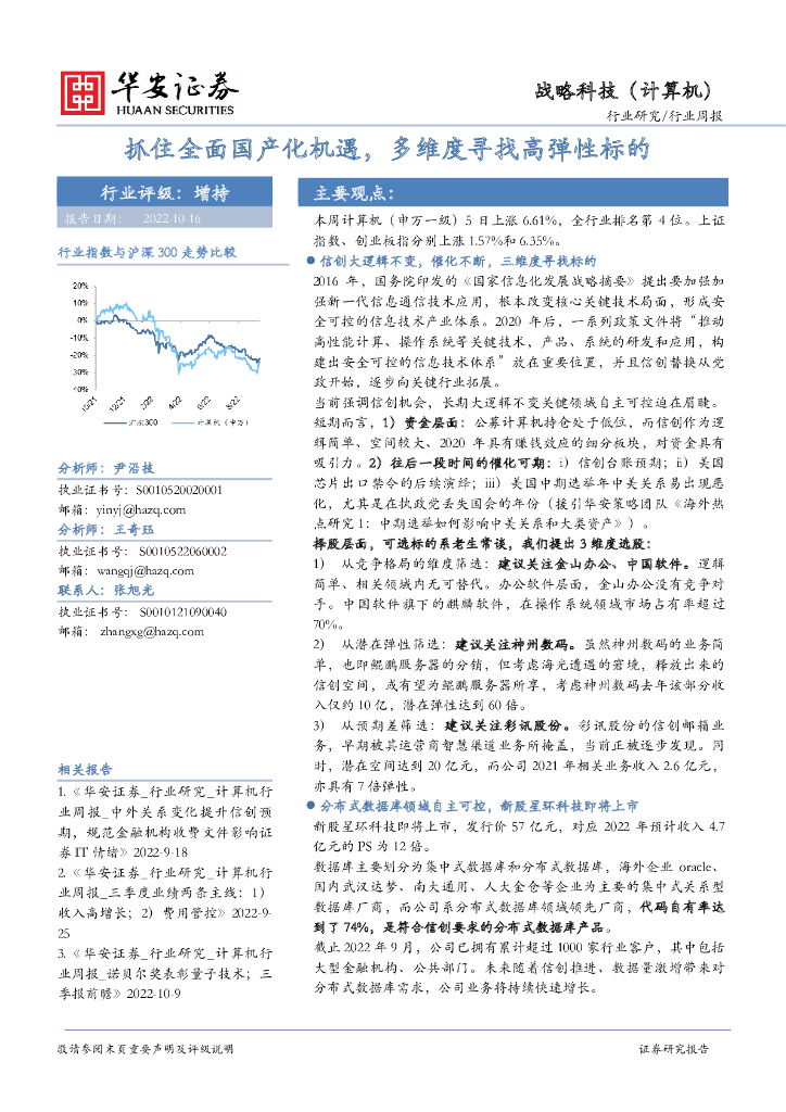 华安证券:战略科技(计算机)行业周报:抓住全面国产化机遇,多维度寻找高弹性标的.pdf