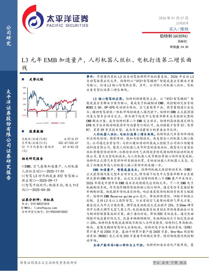 太平洋证券:伯特利(603596)-L3元年EMB加速量产,人形机器人丝杠、电机打造第二增长曲线.pdf