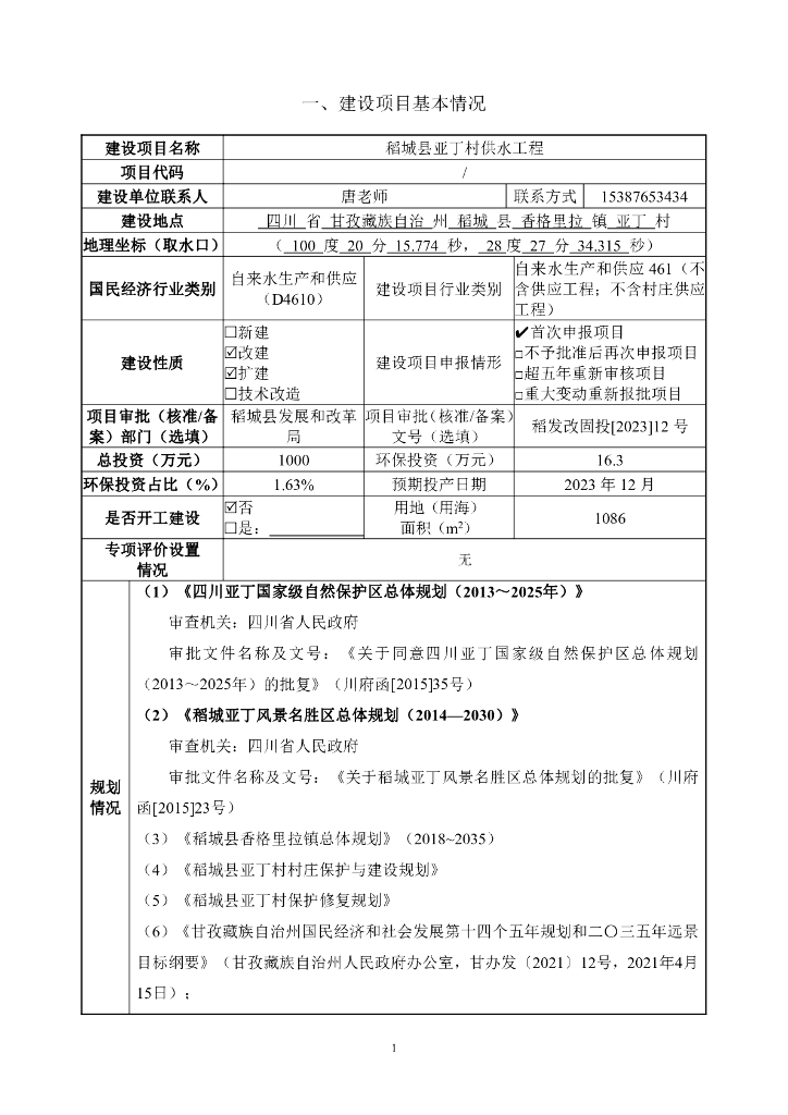 稻城县亚丁村供水工程建设项目环境影响报告表(污染影响类)(公示本).pdf