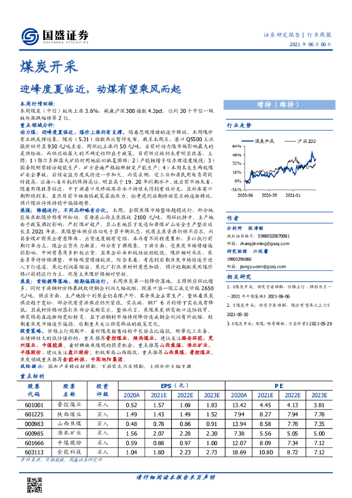 国盛证券:煤炭开采行业周报:迎峰度夏临近,动煤有望乘风而起.pdf