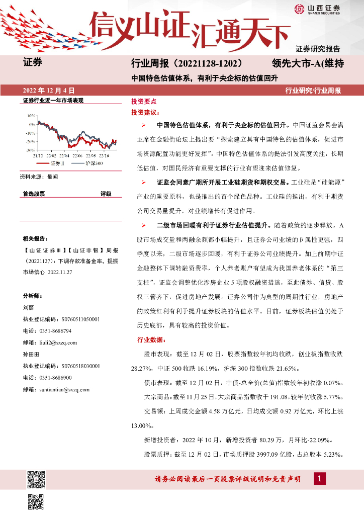 山西证券:证券行业周报:中国特色估值体系,有利于央企标的估值回升.pdf