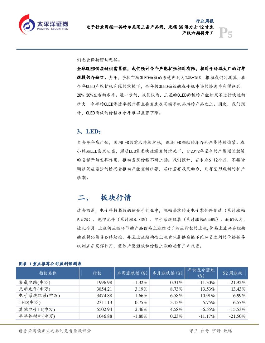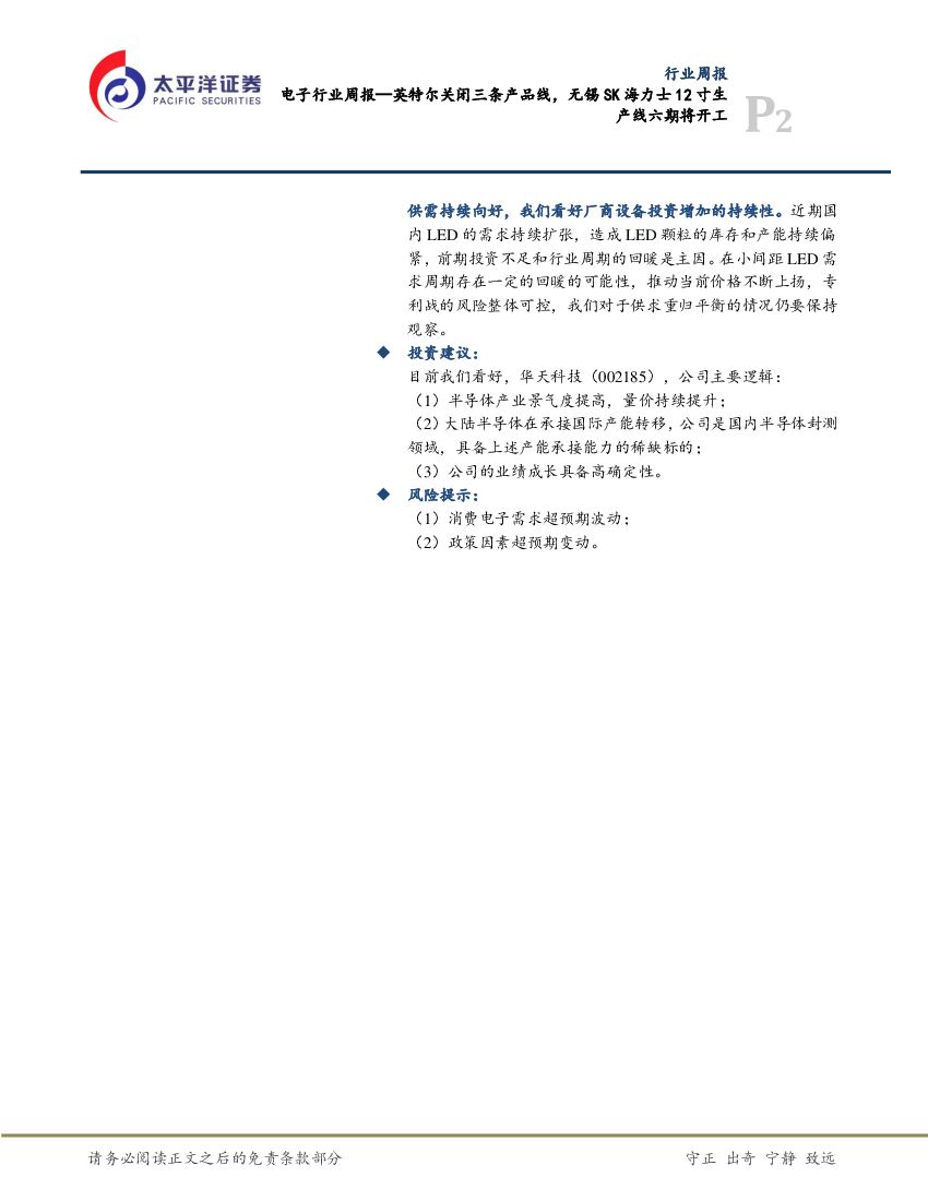 太平洋证券:电子行业周报:英特尔关闭三条产品线,无锡SK海力士12寸生产线六期将开工.pdf