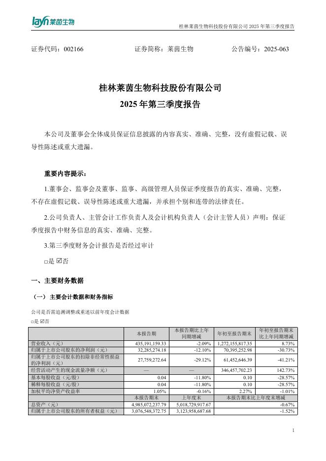 002166-莱茵生物:2025年三季度报告.pdf